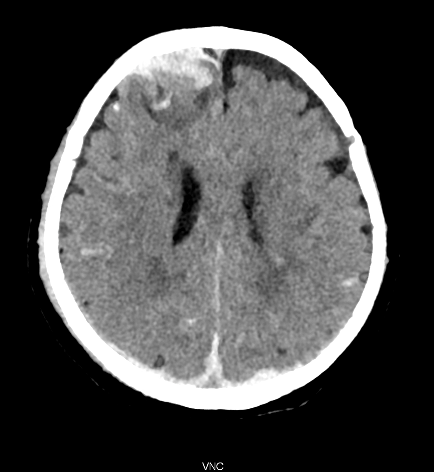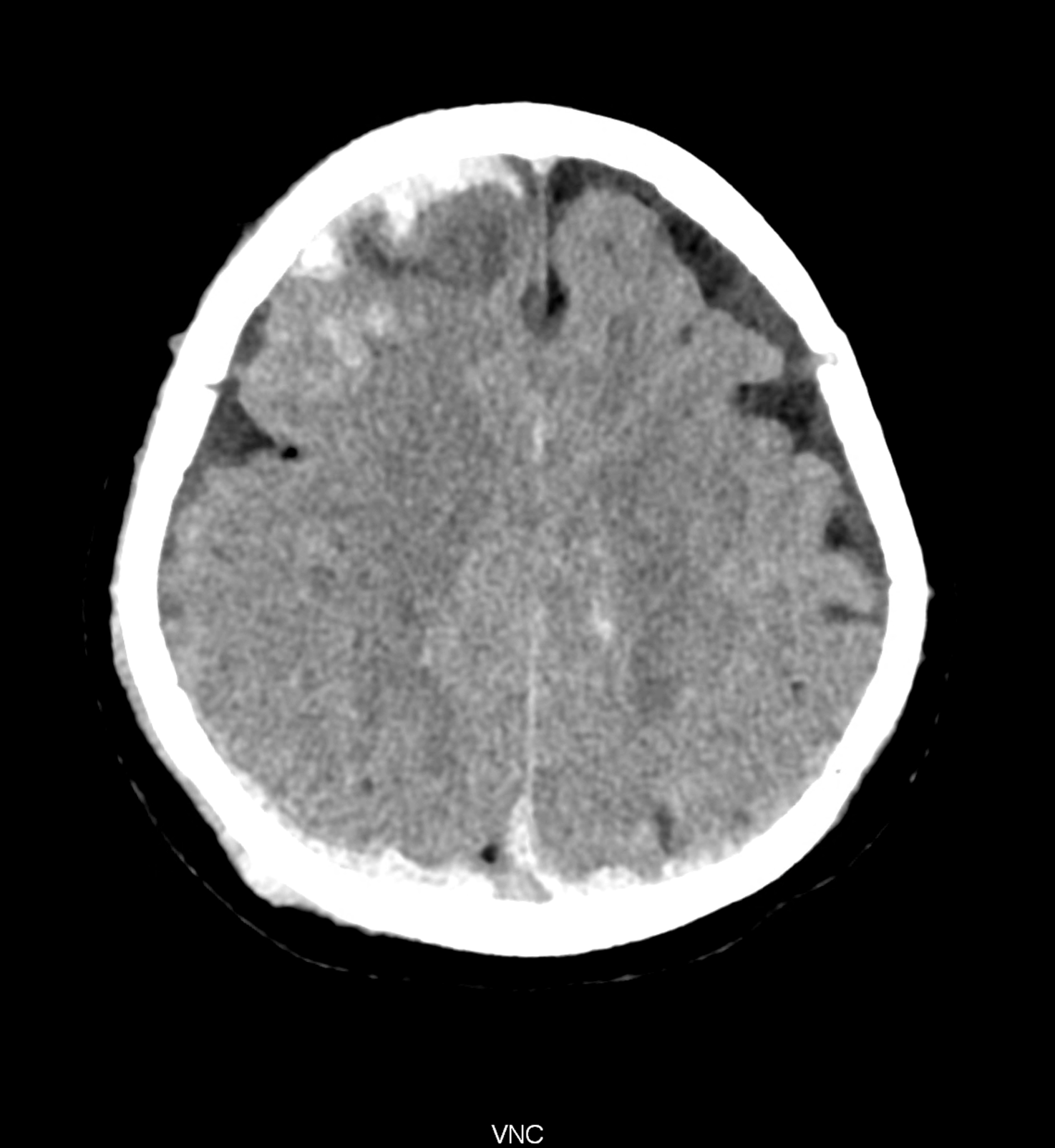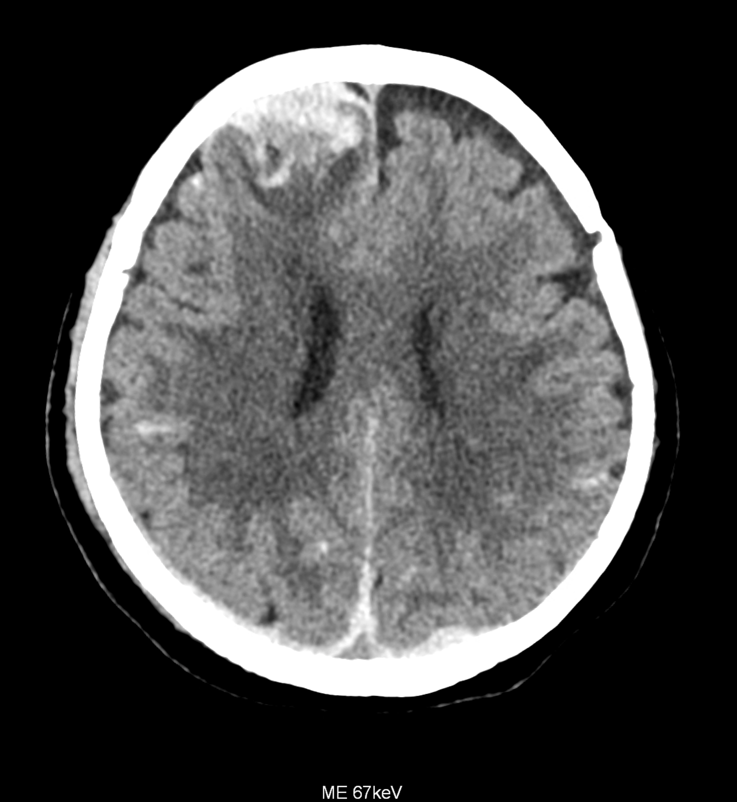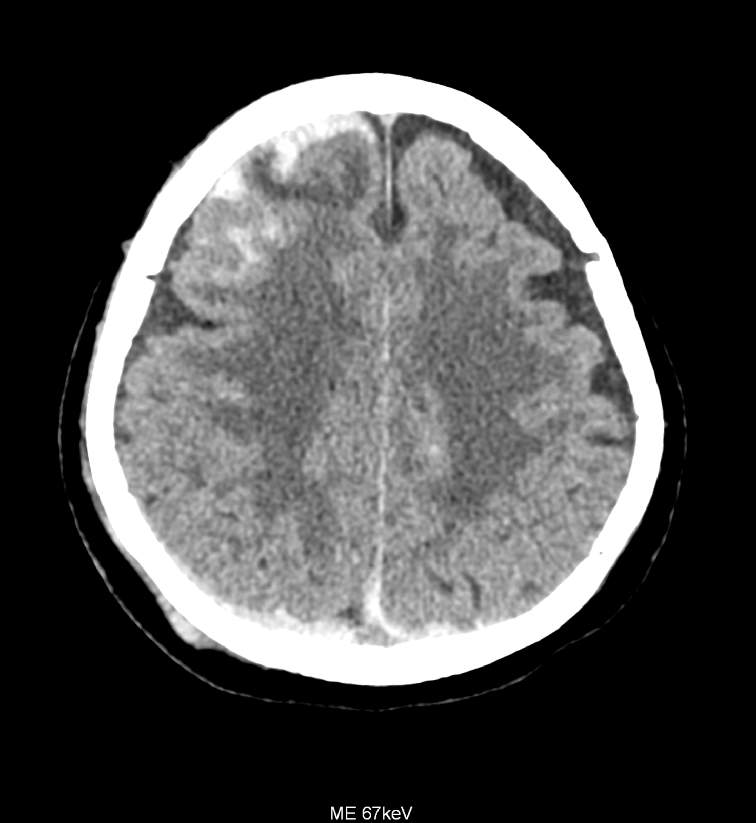 Bleeding is characterized by different absorption characteristics than healthy brain tissue (both gray and white matter) and cerebrospinal fluid. Due to the higher proportion of proteins with amino acids with disulfide bonds, the signal intensity increases at higher energies, making it possible to use monoenergetic imaging at energies above 140 keV, and/or virtual non-contrast. The hemorrhage then becomes more hyperdense, while the rest of the brain tissue acquires a uniform low signal. In addition to bleeding, areas of extracellular fluid of vasogenic origin are also imaged, i.e., in areas around contusion-type brain tissue injuries.
